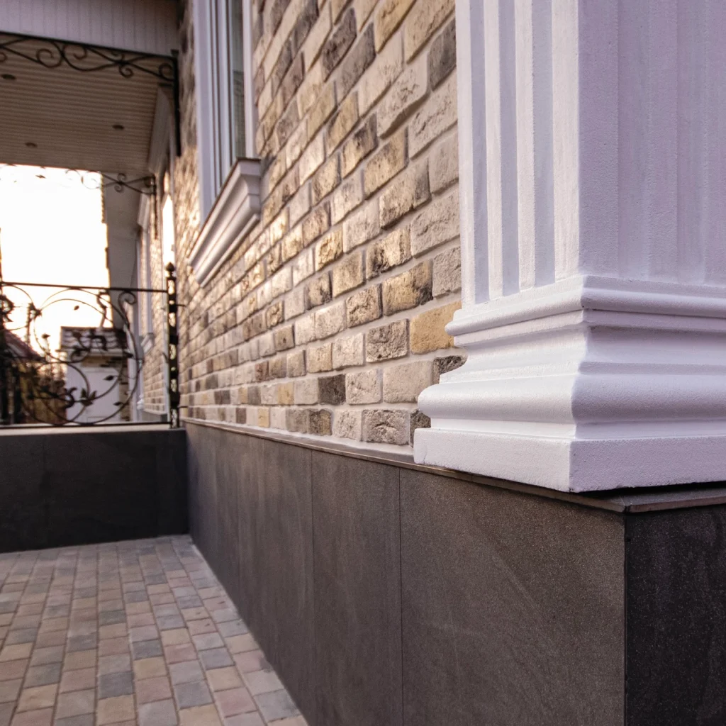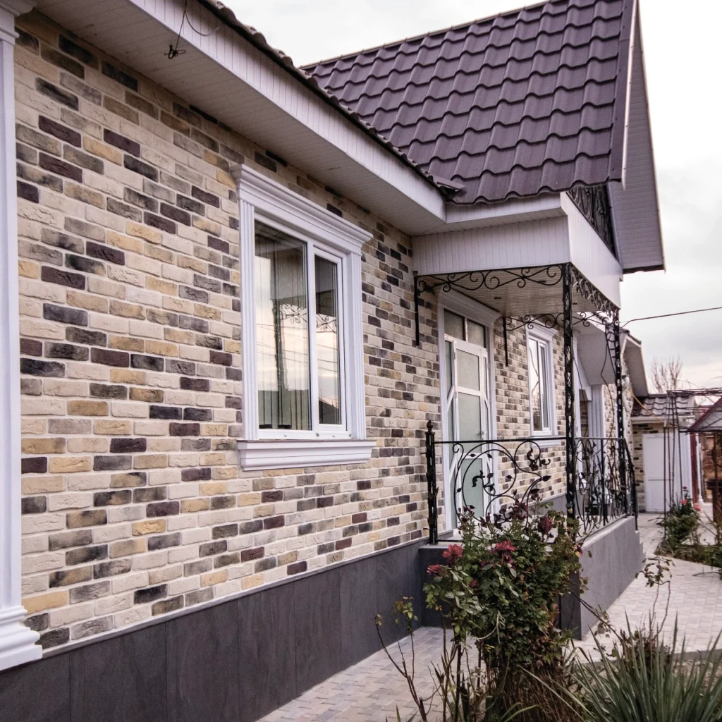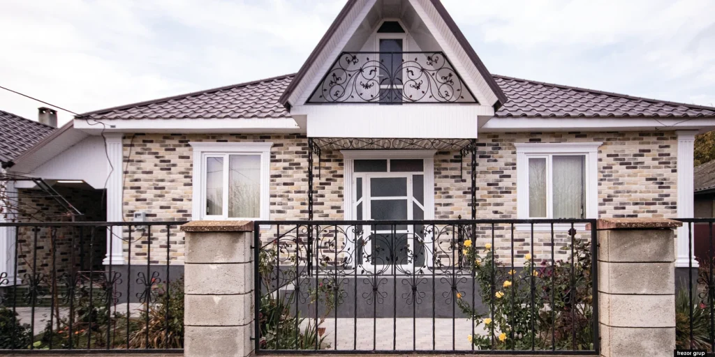 Aceasta combinatie asigura eleganta si rafinament. Teracota de o nuanta inchisa, confera fatadei un caracter modern si stilat, care completeaza calitatea ianlta de executare si siguranta acesteia.