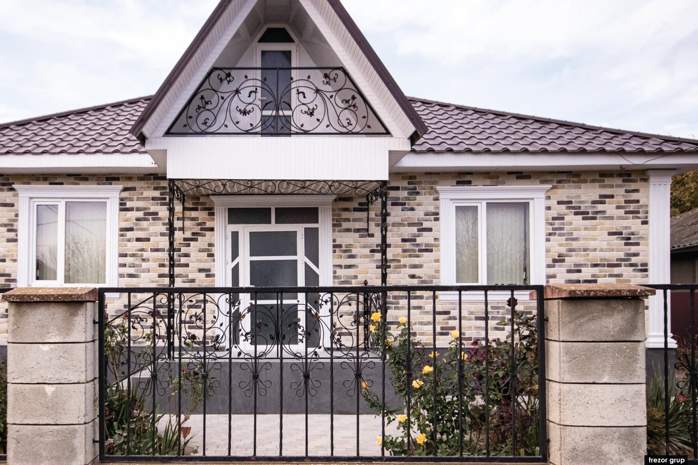 Aceasta combinatie asigura eleganta si rafinament. Teracota de o nuanta inchisa, confera fatadei un caracter modern si stilat, care completeaza calitatea ianlta de executare si siguranta acesteia.
